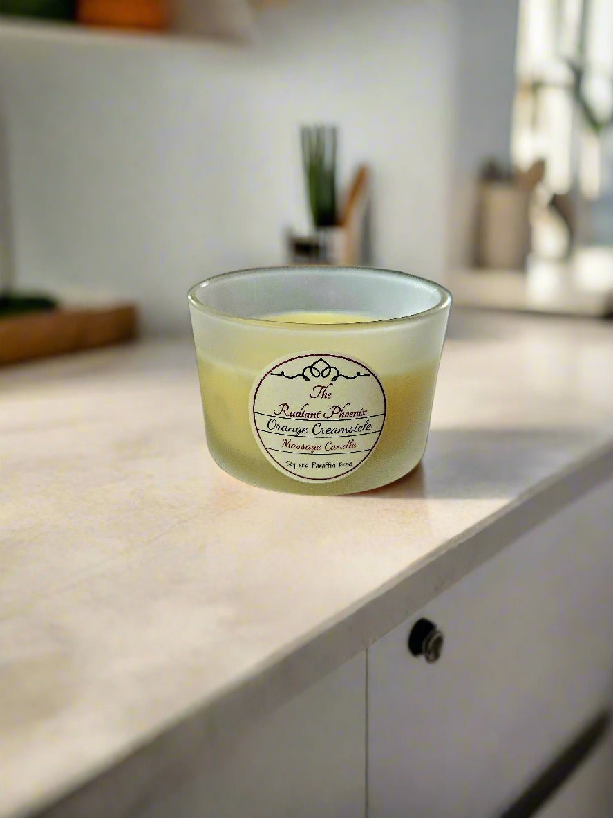 Wrap yourself in the nostalgic sweetness of Orange Creamsicle—a luxurious massage candle that melts into a velvety body oil, crafted for moments of joy and renewal. Let zesty mandarin and spiced bourbon swirl with creamy vanilla, creating a symphony of scent that’s both comforting and captivating. The perfect harmony of sun-drenched citrus and velvety warmth, this blend evokes the carefree magic of summer evenings.