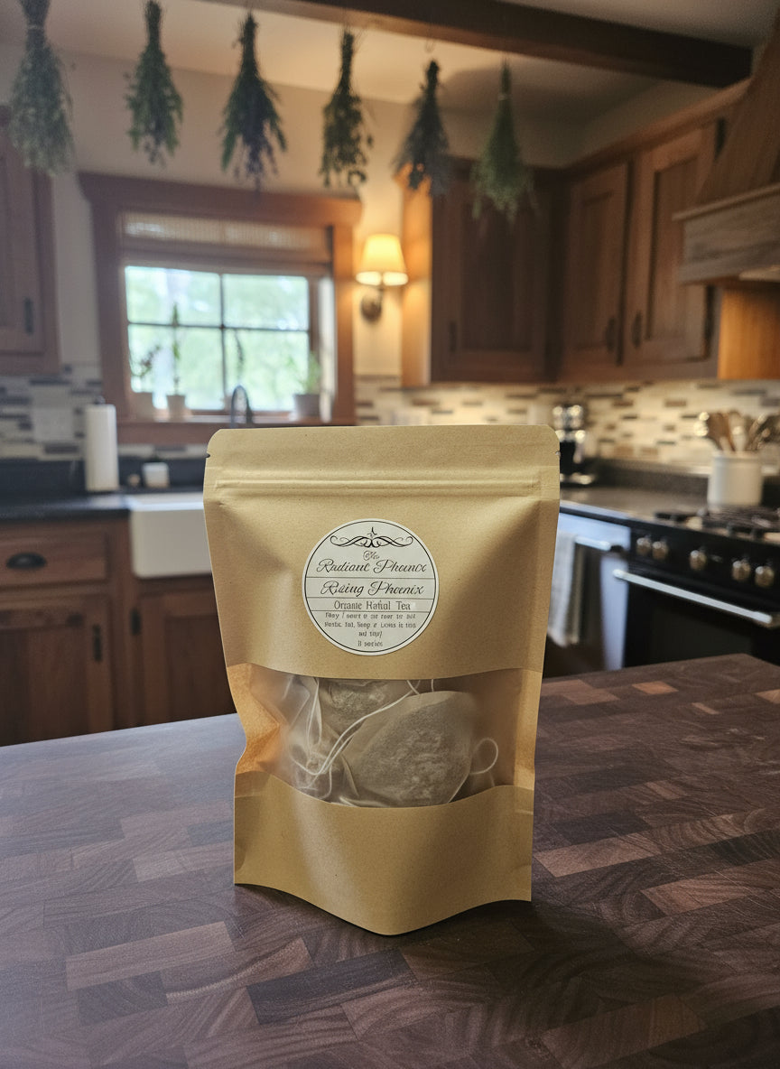 Awaken your inner fire with Rising Phoenix, a bright, revitalizing blend designed to uplift your energy and sharpen your focus. Crafted with organic oolong, white ginseng, Tulsi, and lemon peel, this tea awakens both body and mind — enhancing clarity, stamina, and calm determination.