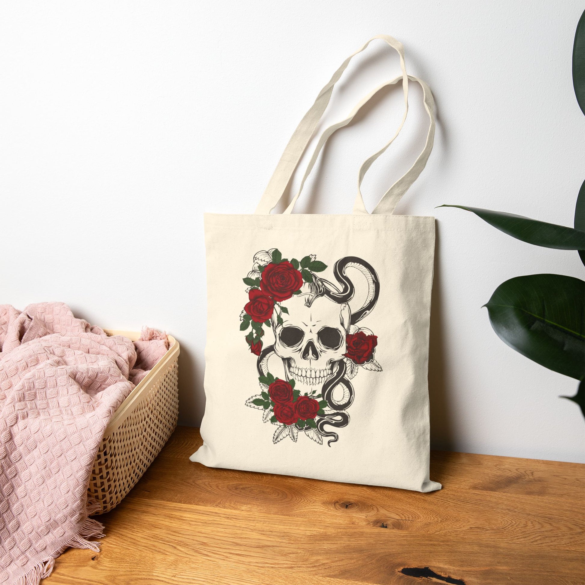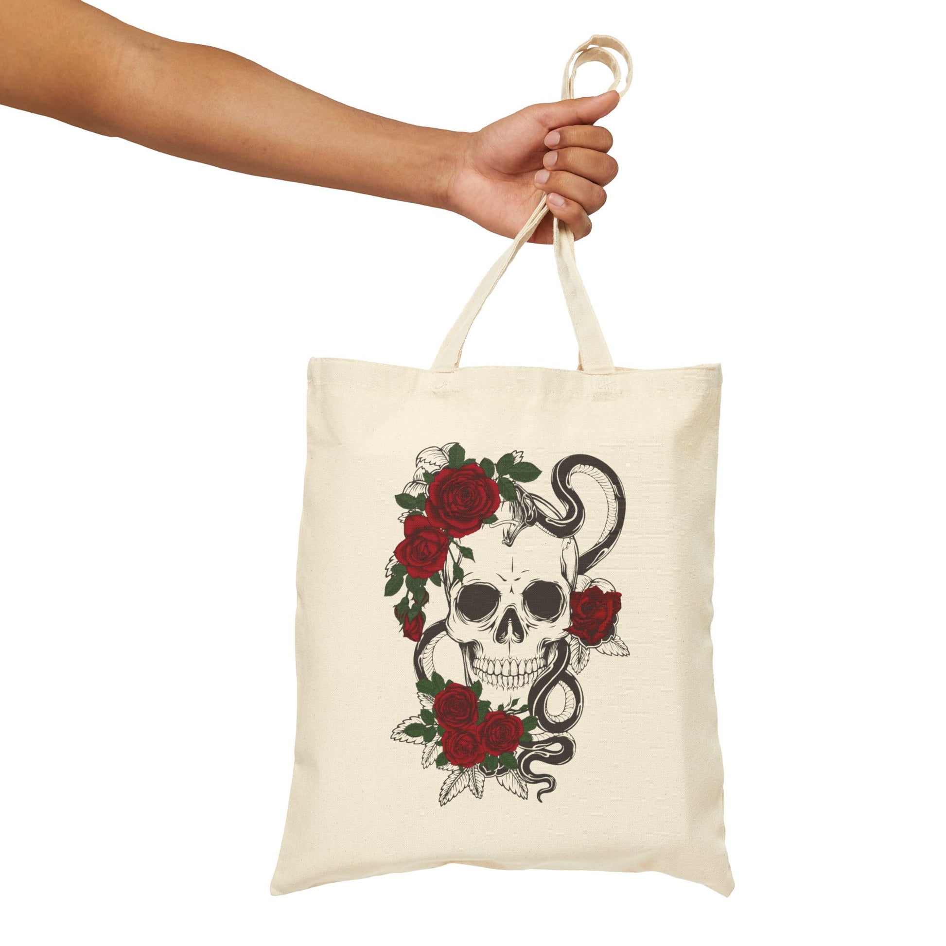 Elevate your style with this chic Cotton Canvas Tote Bag, perfect for daily outings or special events. The unique design featuring a skull entwined with roses adds a bold statement to your outfit. Its sturdy construction ensures it can handle your essentials without compromising on fashion. This bag is an excellent companion for shopping trips, beach days, or casual hangouts with friends. Ideal for eco-conscious shoppers and trendsetters alike, it resonates with those who appreciate a blend of practicality and artistry. Great for gifting on occasions like birthdays, holidays, or celebrations of individuality!