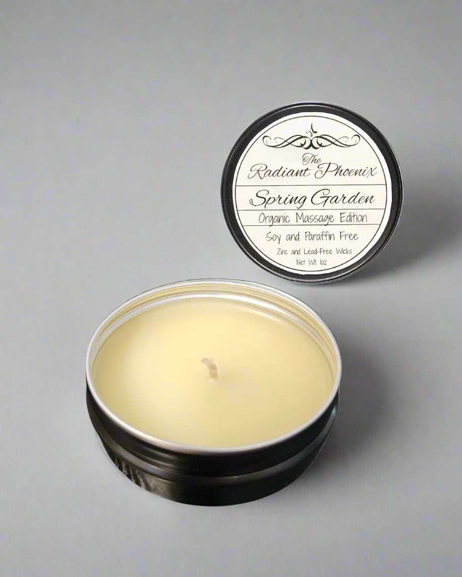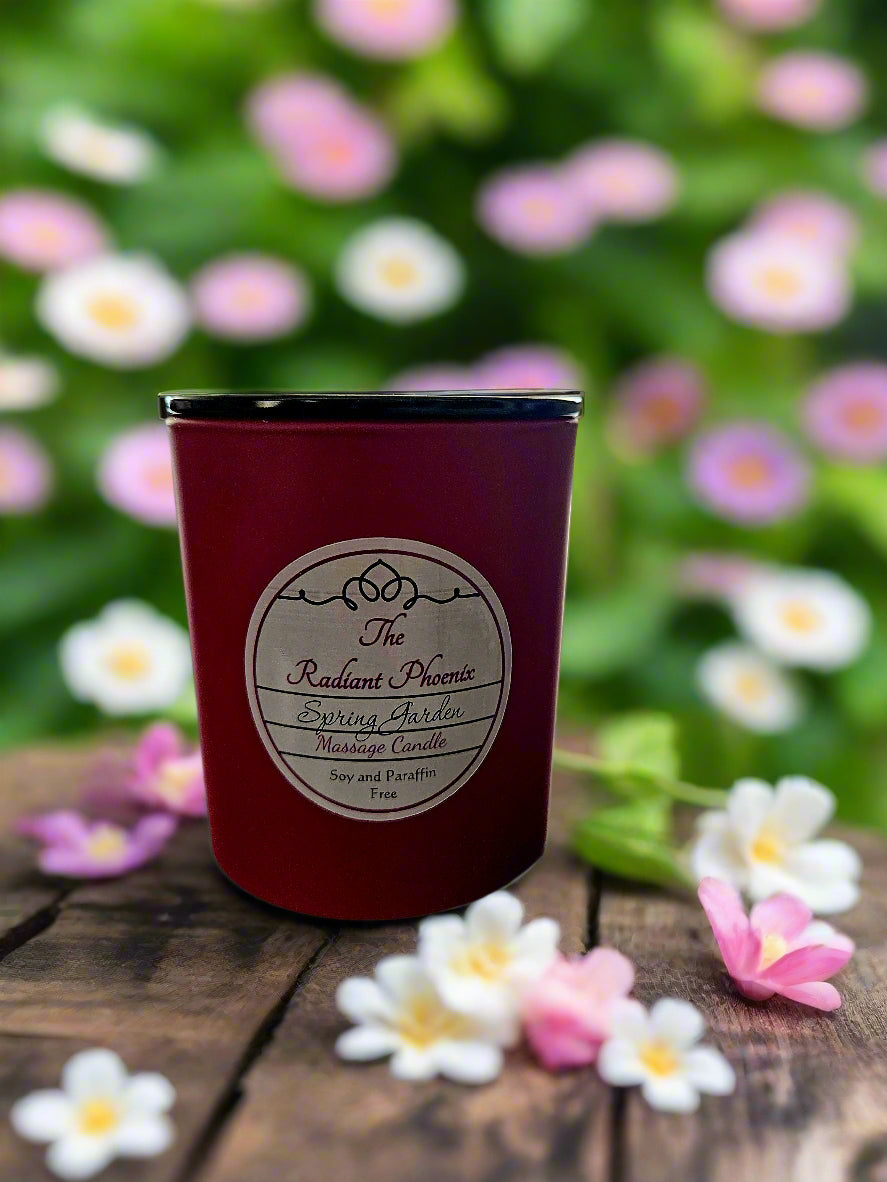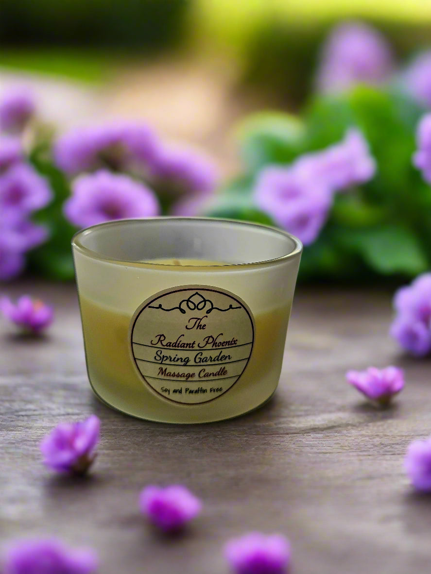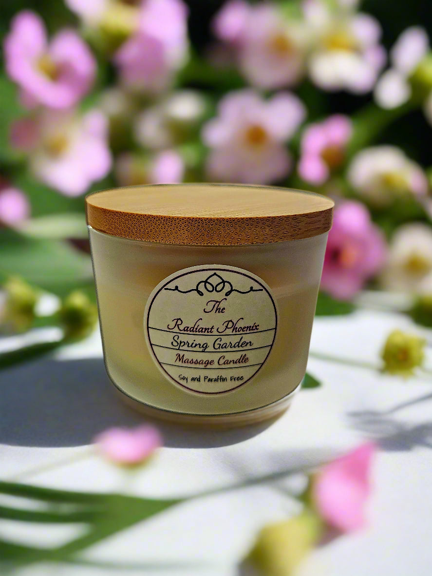 Step into a realm of renewal with Spring Garden, a luxurious massage candle inspired by Persephone, the goddess of spring and new beginnings. Notes of orange blossom, cherry blossom, key lime, and clean cotton swirl together like a soft breeze through a blooming garden, while undertones of plum, pomegranate, bamboo, and beechwood ground you in serenity and sensuality.