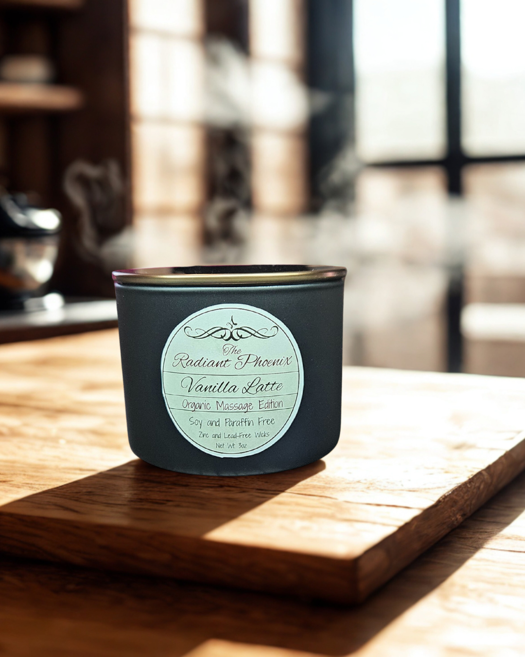 Crafted with organic shea butter, organic coconut oil, organic mango butter, organic cacao butter, and cosmetic-grade yellow beeswax, it’s a clean-burning blend that hydrates deeply, softens skin, and invites relaxation for body and spirit alike.