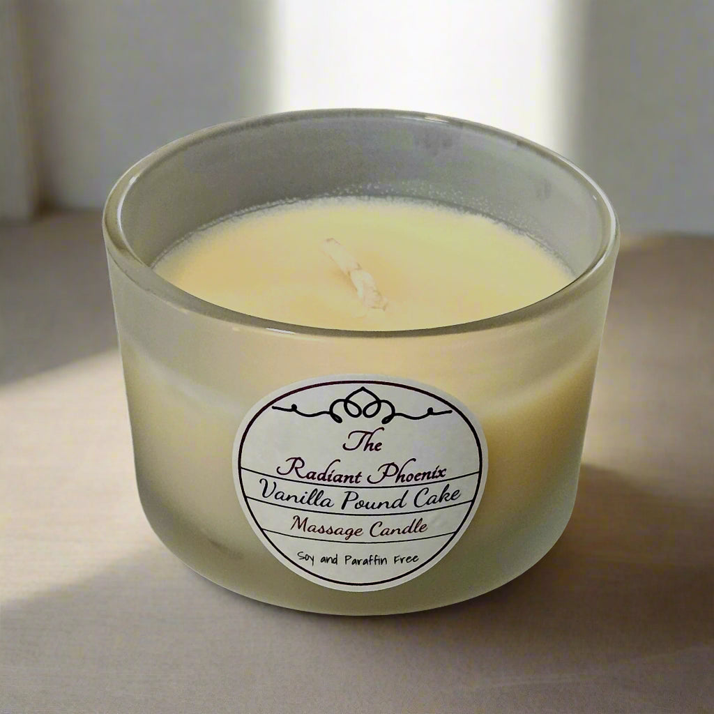 Let the warm, nostalgic embrace of Vanilla Pound Cake wrap you in decadent comfort. This luxurious massage candle blends rich buttercream, creamy vanilla, and a whisper of smooth bourbon to create a scent that’s both dreamy and grounding—like fresh baked bliss straight from the oven.