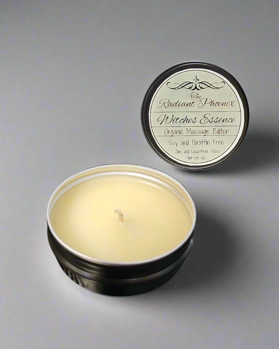 Crafted with organic coconut oil, organic shea butter, organic mango butter, organic cacao butter, and cosmetic grade yellow beeswax, this clean-burning candle is free from synthetic waxes and filled with skin-loving magic. Whether part of your daily ritual or a sacred self-care ceremony, Witches Essence is a reminder to slow down, soften, and reclaim your radiance.