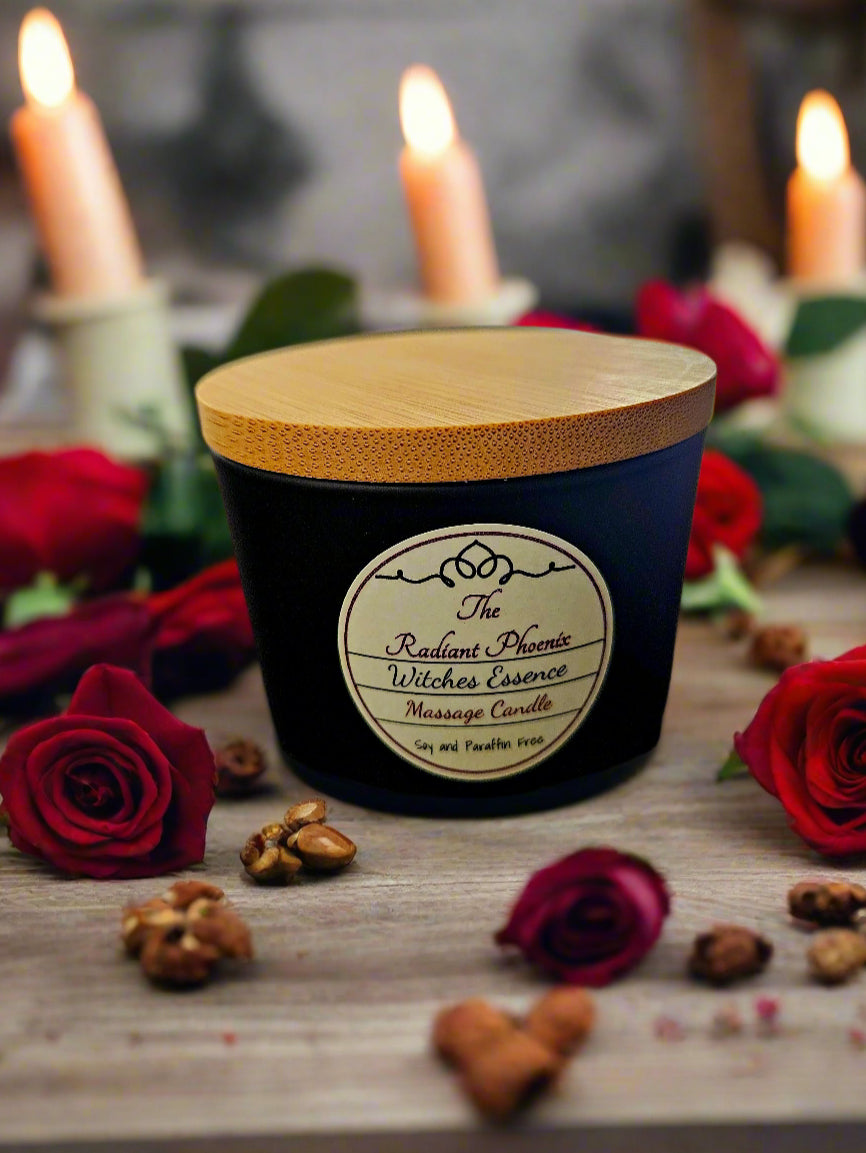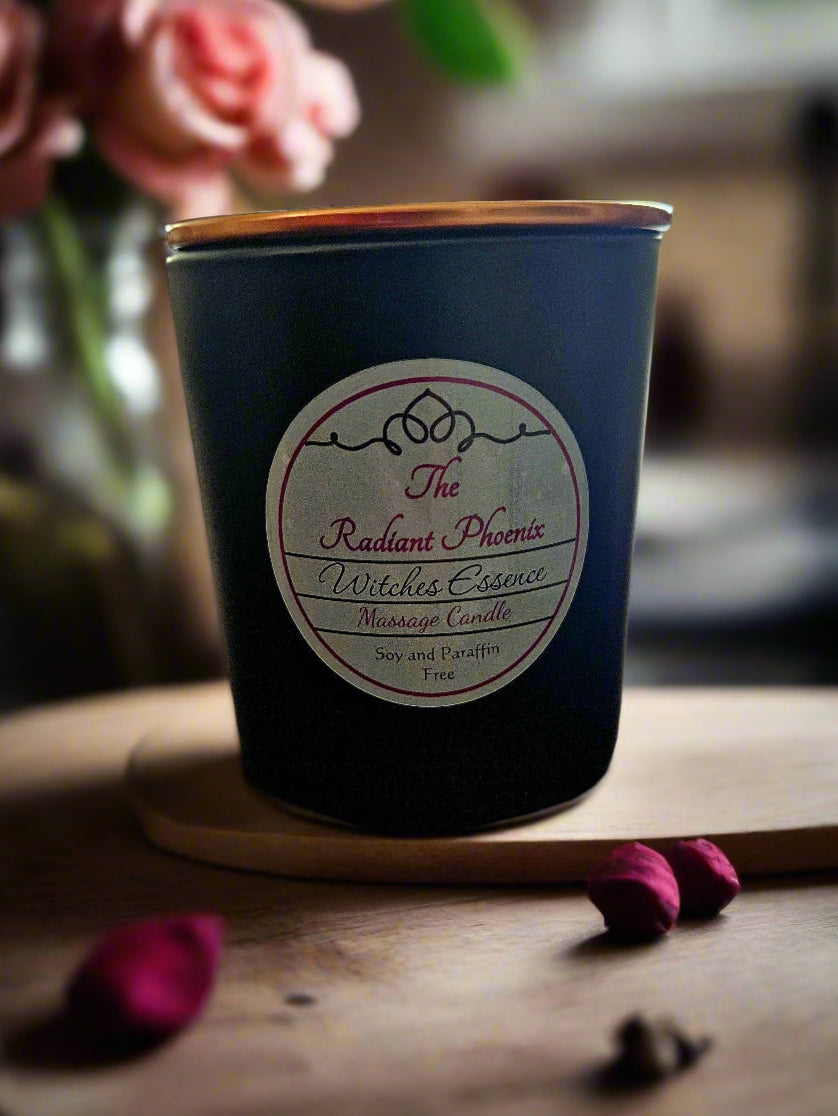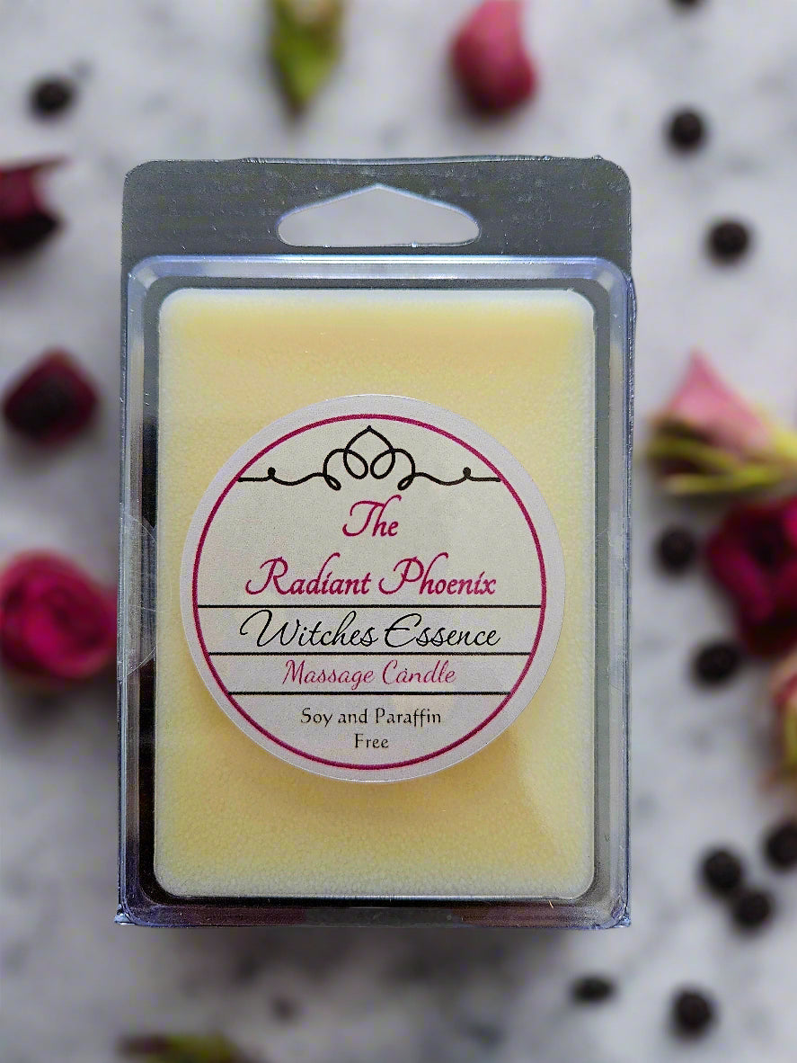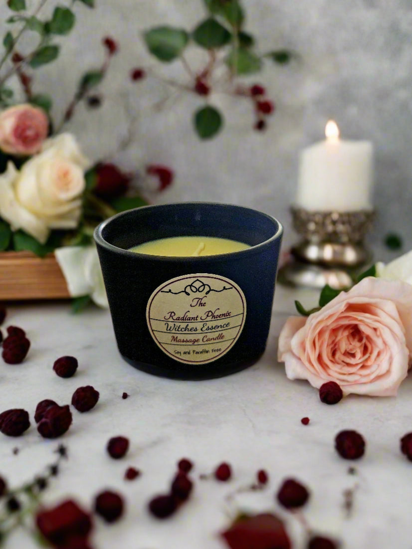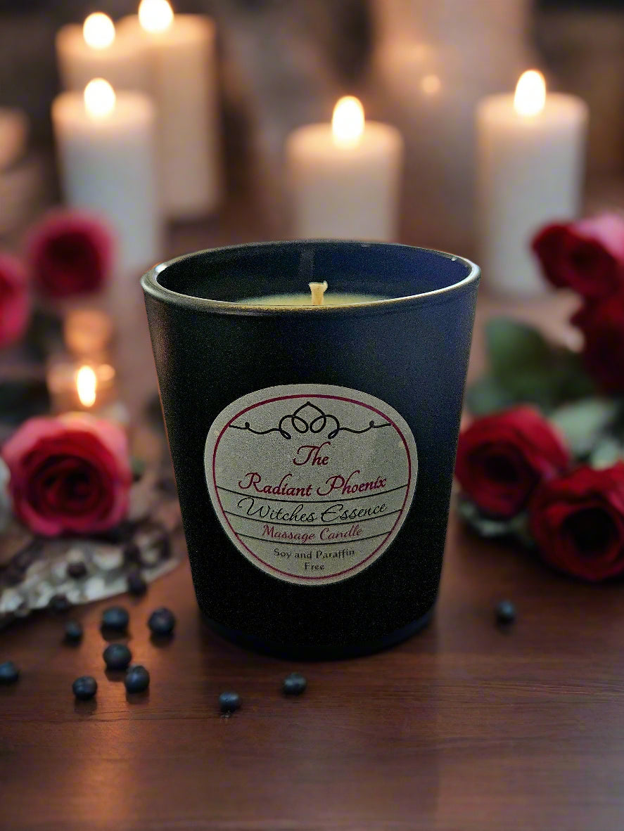 Step into your power with Witches Essence—a luxurious massage candle that melts into a warm, nourishing body oil, crafted to awaken the senses and align your energy. Infused with a bewitching blend of pink peppercorn, juicy grapefruit, plum, and black rose, this enchanting elixir deepens with whispers of cumin, vanilla, earthy patchouli, and resinous labdanum.